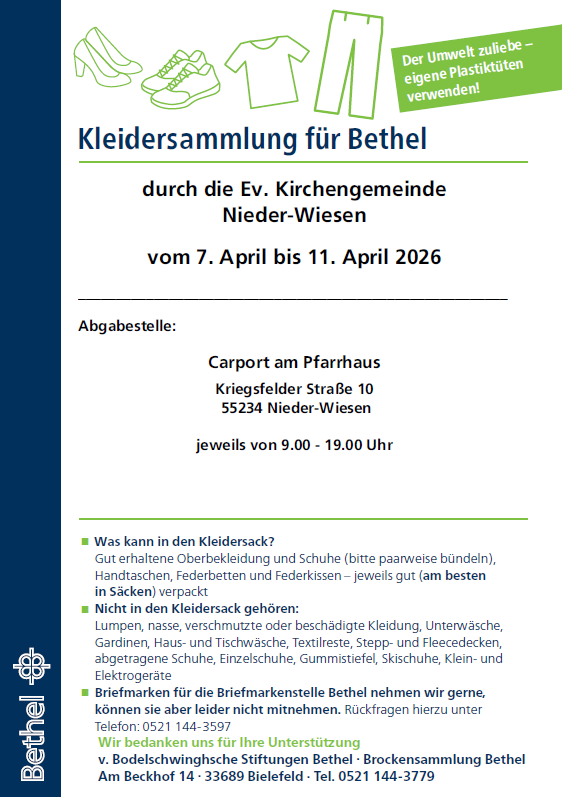 Kleidersammlung für Bethel in Wendelsheim